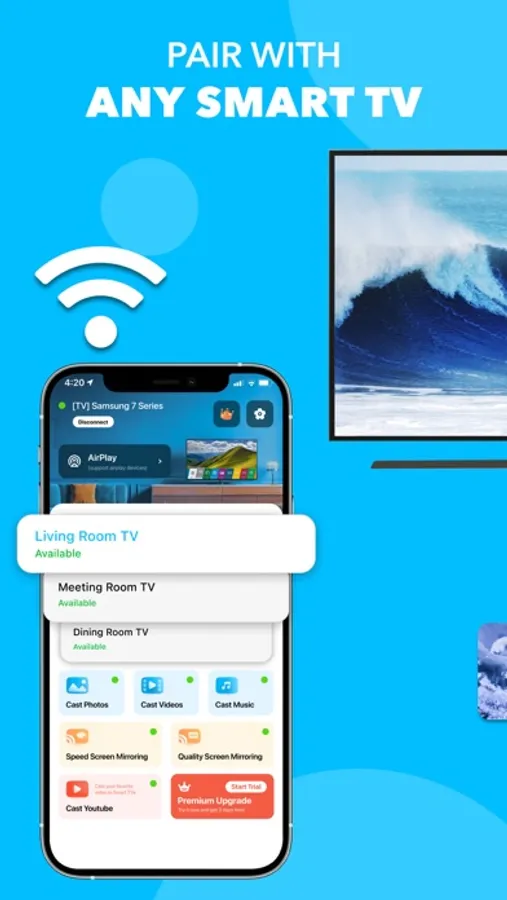TV Cast allows you to pair your iPhone with any Smart TV and cast your media directly to them, as well as mirror your screen without any delay. Setup and connection are fast and simple.