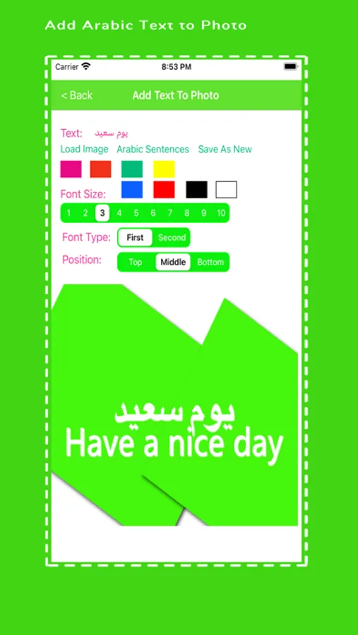 Apart from sending messages in Arabic, you can also add the Arabic sentence to the photo and share to your friend.