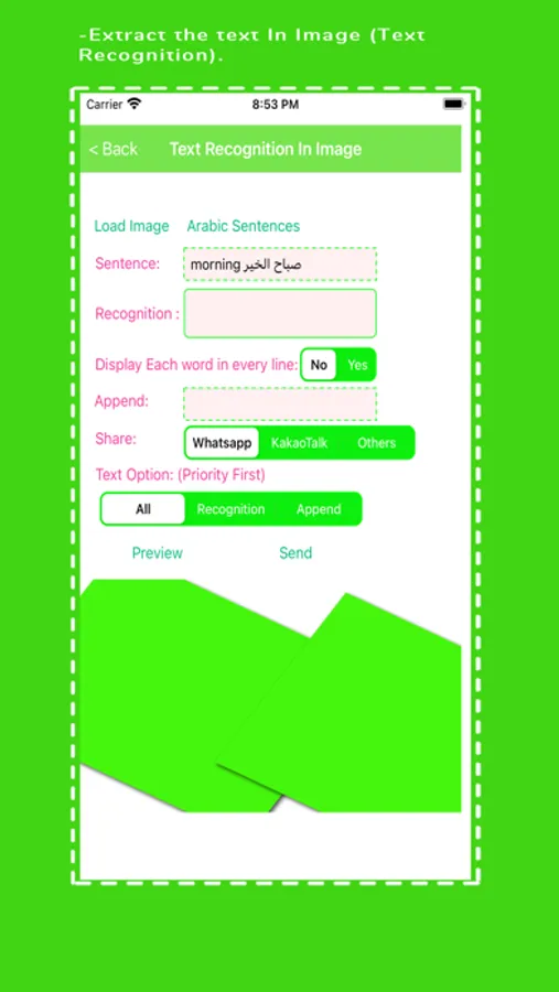 Finally, you use "Text Recognition from Image" features to get the text from image and share it to friend.