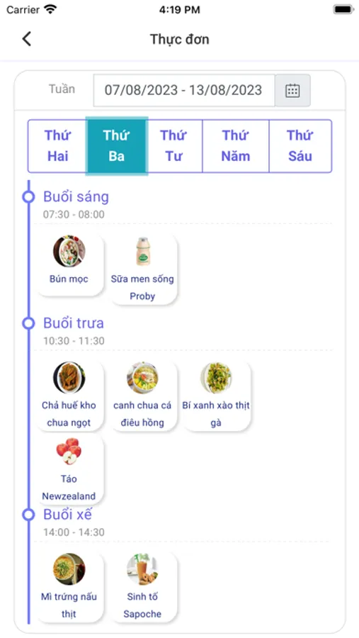 • Theo dõi thực đơn hàng tuần của bé để giúp phụ huynh có chế độ dinh dưỡng phù hợp tại nhà.