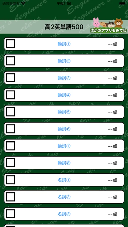 高校2年生で学ぶ英単語が500単語収録されているアプリです。