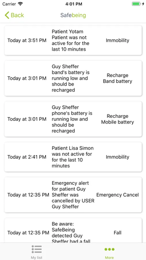 The SafeBeing Caretaker App is an optional companion app for caregivers and loved one’s so they can monitor and respond to SafeBeing users in case of sudden falls, wandering outside of designated safe zones, immobility, sleep irregularities, non-compliance with medication and low fluid consumption. Alerts and notifications are customizeable.
