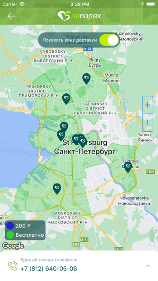 – карта районов доставки