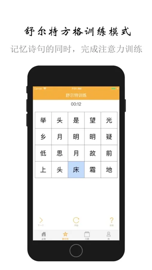 *采用舒尔特注意力训练模式进行反复练习,在记忆古诗的时候,同步训练注意力、识字能力