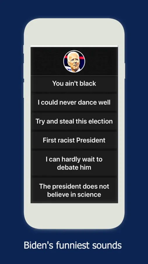 We have combed through countless debates, watched hours of interviews, and dissected press conferences to bring you the funniest statements, gaffes, and insults from Trump, Biden, Bernie and many more. We currently have 225 sounds in the app, including more than 40 each for both Trump and Biden.