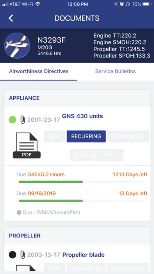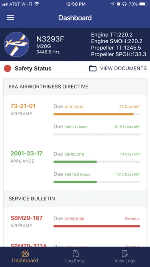 * View the status, due dates, and due times of FAA airworthiness directives that apply to your aircraft