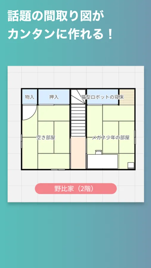あなたの家の間取りからアニメでお馴染みのあの家の間取りまで、かんたんに再現することができます