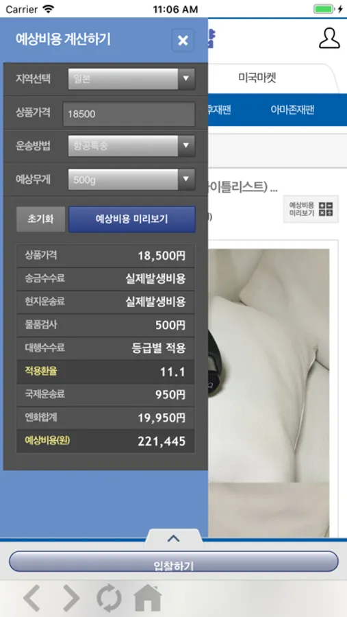 4. 구매전 미리 예상비용을 확인가능한 예상비용 미리보기 기능.
