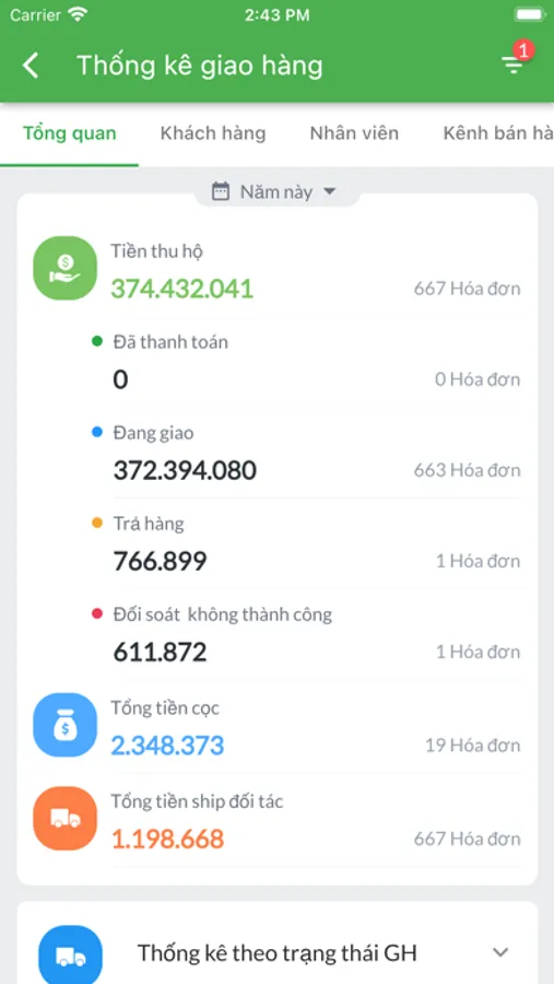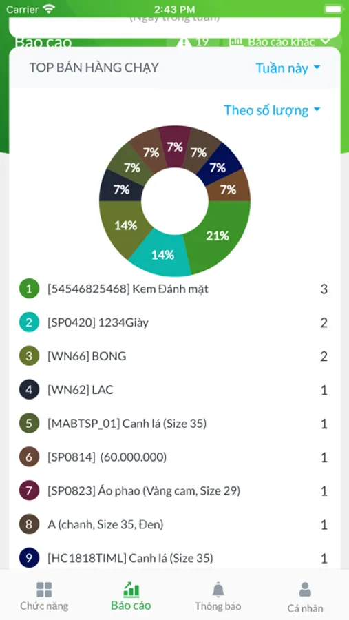 - Thống kê/ báo cáo giúp nắm bắt tình hình kinh doanh