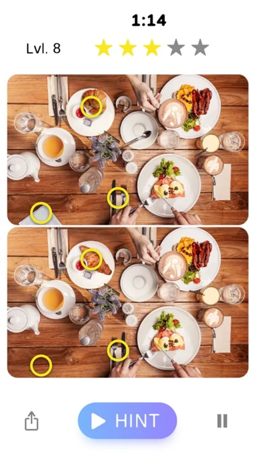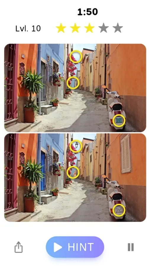 Spot the Difference - Find Them All is a fun brain teaser game where you have to find what's different between two near-identical real photographs! Each pair has 5 differing details, and your job is to find them all. So get focused and keep your eyes peeled, Spot the Difference - Find Them All has tons of levels to beat! Just don't forget that each one is timed. But don't worry! If you're just a step away from victory but time is running out fast, just use a special hint! That's what they're there for!
