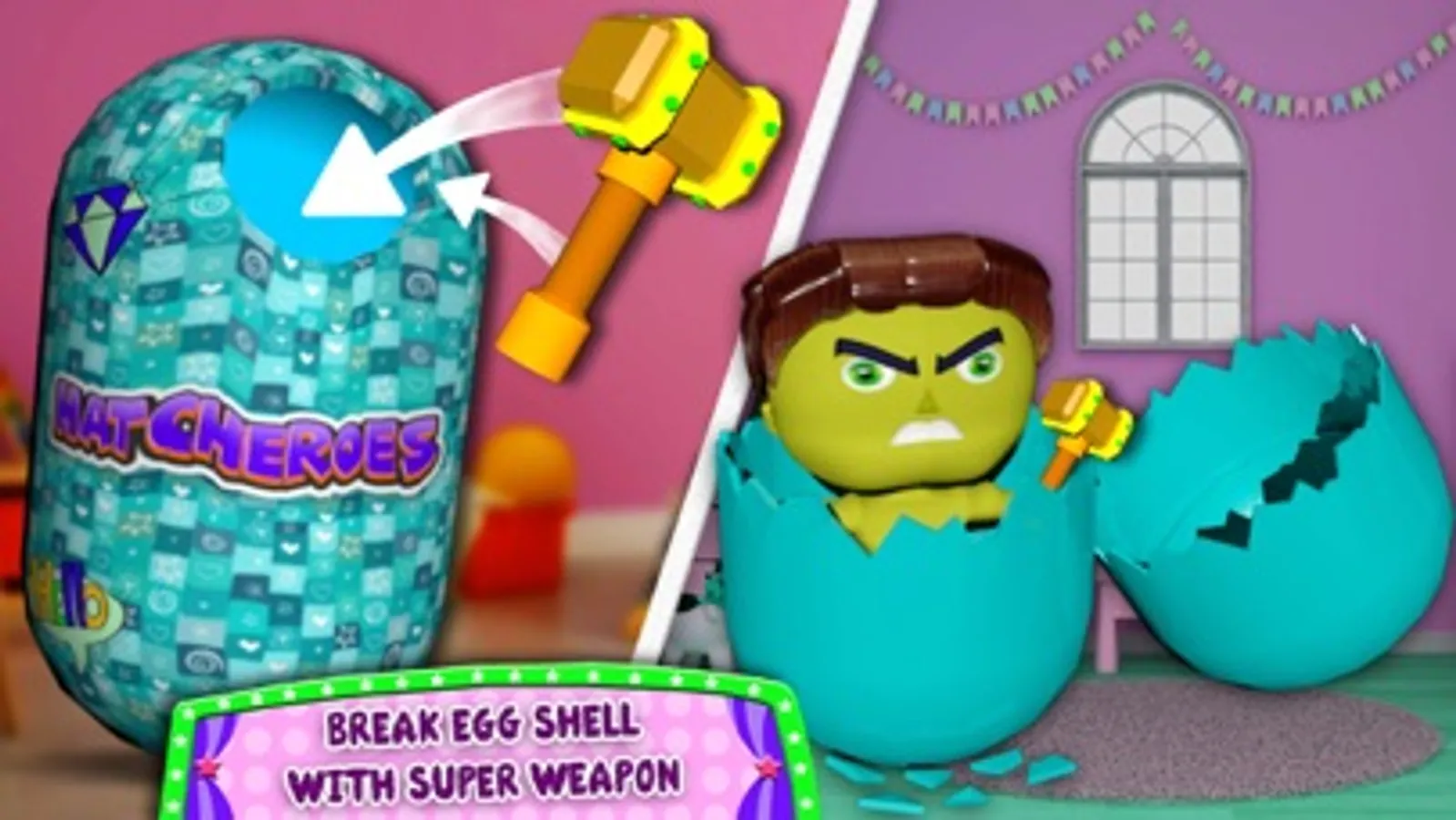 Enjoy this fine line of robotic toys! The flagship superheroes that hatch themselves and other superheroes that will hatch themselves using super weapon. Let the super hero peck the surprise egg and break any leftover parts of the egg. Enjoy unboxing and opening these cute hatching eggs we call “Hatcheroes” and summon different superheroes that will help the world with their super powers. Help them with their weapons and enjoy breaking them open using different techniques. What’s inside the Hatcheroes surprise egg is a mystery. Which hero will you get ? What are his powers? What can they do ? Unbox and open these surprise eggs to find. Enjoy collectible super heroes with glowing nests and surprise eggs. Wait for these cute super heroes to hatch out of the eggs and show this world some of their super powers. Complete the collectable toys and reveal what is inside these blind bag eggs. Show the magic of your super heroes to the world. These bigger surprises are waiting.