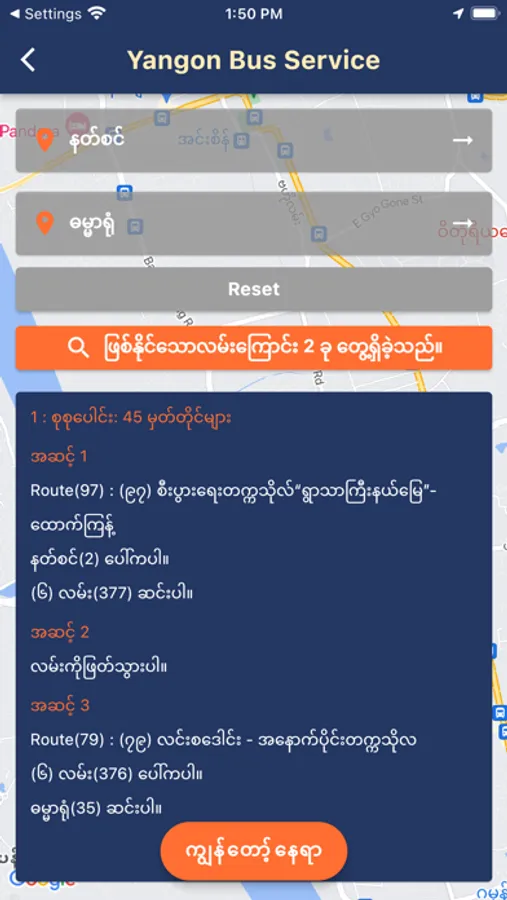1. Route calculation: It can automatically calculate the route according to your current location or specify the starting bus station and destination bus station, and can draw the route map on the map.