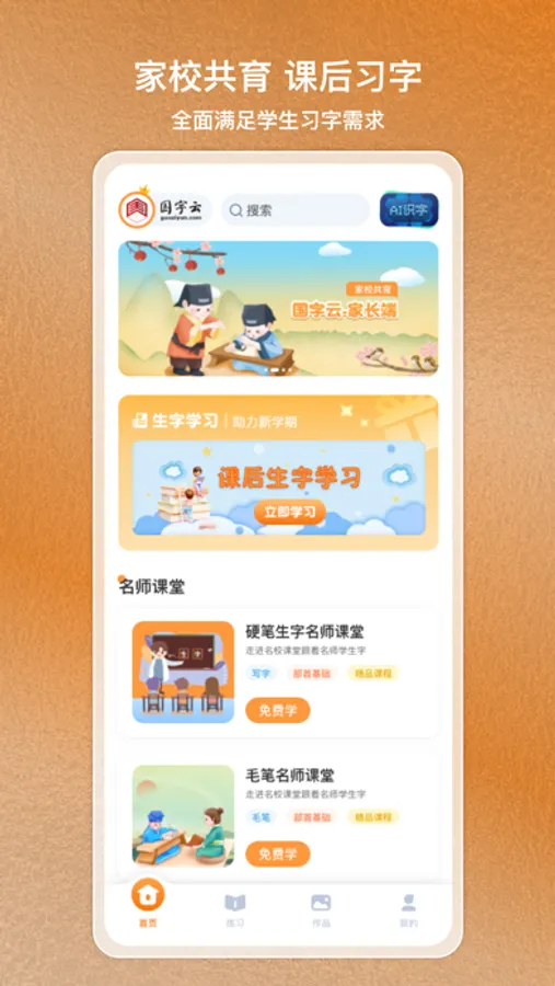 国字云智能书法教学平台,是目前国内唯一一款集教、学、练、测、评等五大功能为一体的专业书法教学平台。国字云智能书法教学平台拥有权威、专业的知识内容体系,既涵盖经教育部审核通过的十一套书法教材版大纲全部内容,又与部编版语文教材完全同步匹配,通过视频、音频、图片、动画等多媒体形式,引领书法课堂情景式教学,全面激发学生的学习兴趣,能同时提升书法书写能力与语文学习成绩,非常适合广大中小学生在家自主学习和练习。