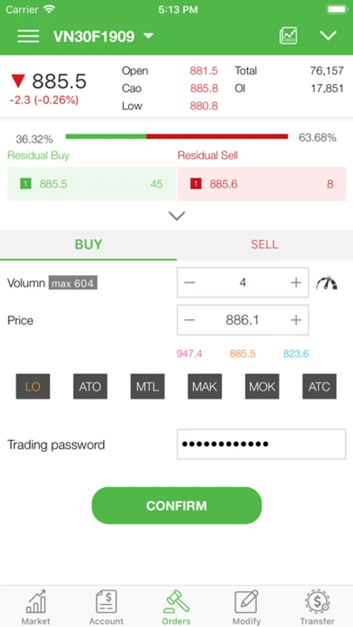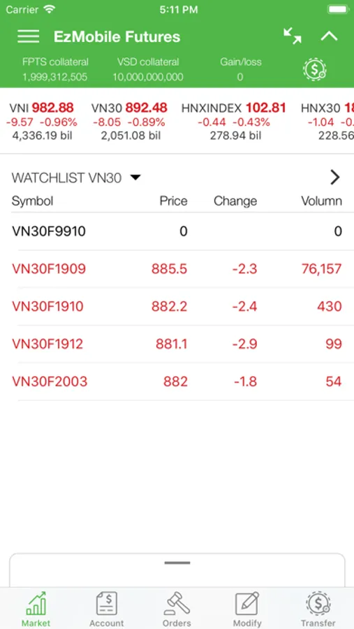 EzMobileFutures is a free application that allows FPTS’s clients to trade Vietnamese derivatives. You can manage your account, view market data in real-time, place orders, transfer money and so much more.