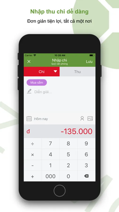 + Đính kèm hình ảnh liên quan đến khoản thu chi khi cần chứng thực thực tế
