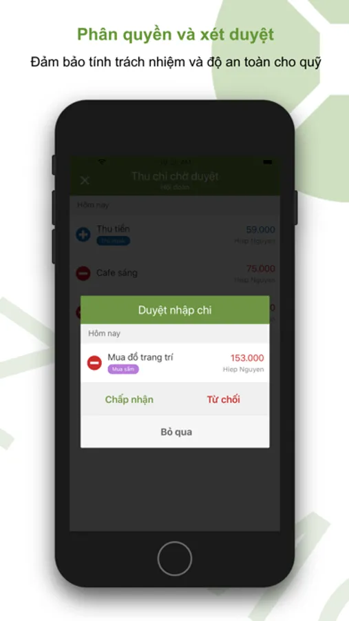 + Gán thành viên liên quan đến thu chi trường hợp cần thiết, xét duyệt thu chi
