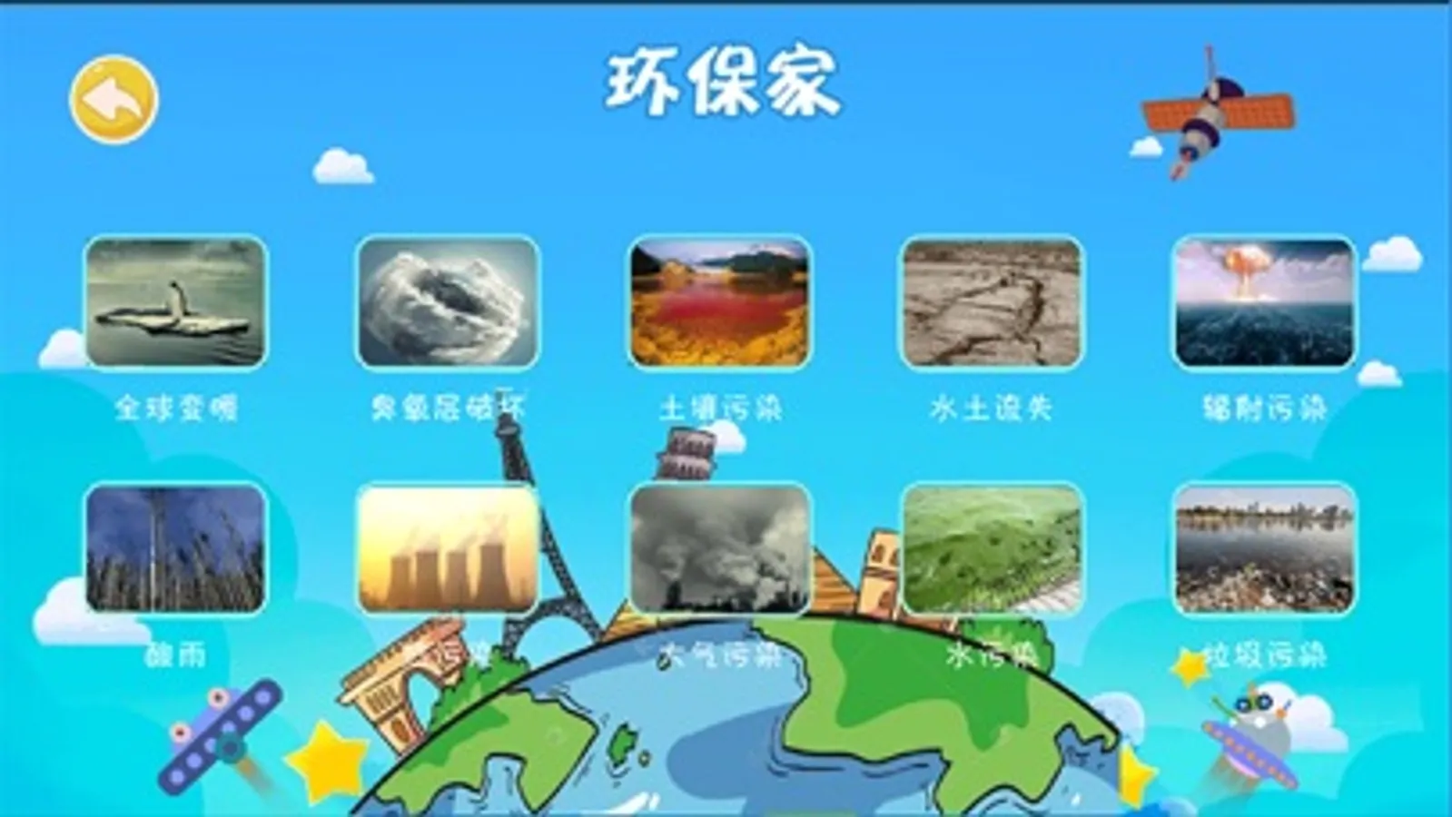 主要为孩子讲解了地球上的种种气象表现,身临其境的去感受大自然的温柔和威严,还可以和龙卷风、闪电一起合影哦。《太阳系》宏观的描述了我们地球在宇宙中的位置,配以生动的八大行星轨道动画,让孩子了解我们生活的太阳系的奥秘。《航空航天》模块主要为孩子展现了我国近现代在航空航天领域取得的卓越突破,从长征型系列火箭到神舟载人航天,从宇航员到卫星,孩子们想知道的航天知识,这里都有。《地月系》太阳、月亮和地球的关系,就像亲密的一家人,怎么也分不开,我们通过动画的形式向孩子们讲述了日食月食的形成原因,使得孩子们对这方面的知识有一个立体性的理解。《小小环保家》把“全球变暖”、“臭氧层空洞”、“水土流失”等现存的世界性问题通过语音和配图的方式展现出来,小朋友们想立志于解决这些问题,就要现在立志哦。
