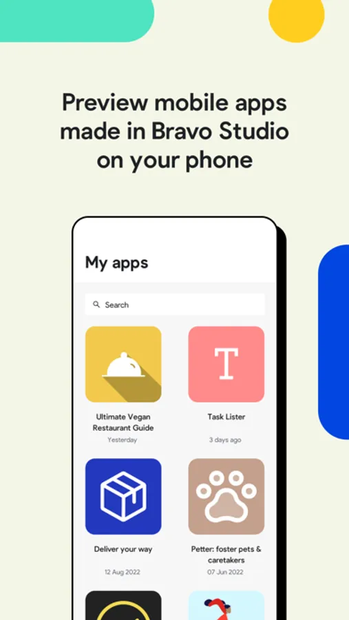 Bravo Vision is the companion app to Bravo Studio which allows you to view and interact with your Bravo projects on your iOS device.