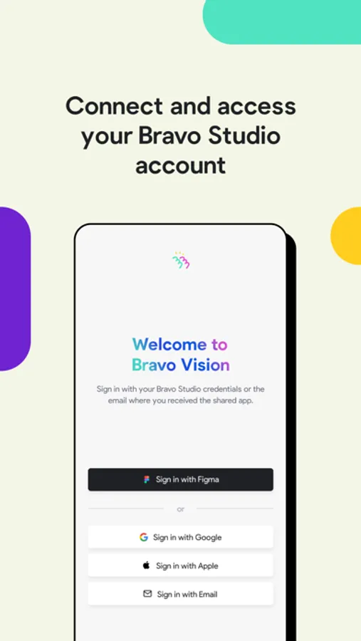This app requires you to log in with your Bravo Studio account in order to see your projects.