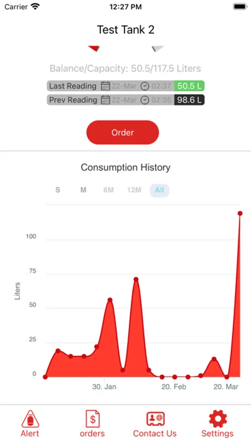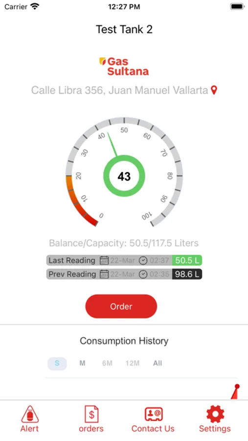 - Monitorear el nivel de gas en tu tanque estacionario (porcentaje y litros).