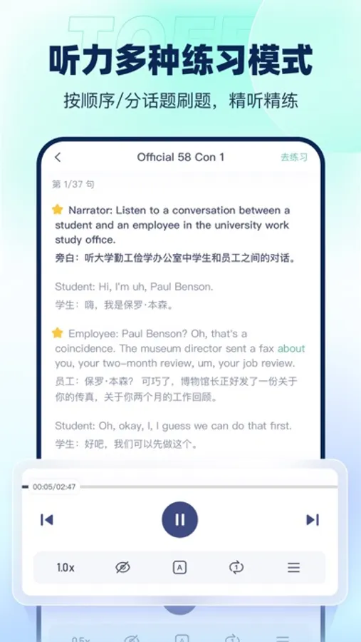 「新东方托福Pro」,一站式托福备考工具,帮你快速提高托福成绩。含ETS官方授权Official 30-58 阅读+听力+口语真题。新东方顶级产研团队+优秀师资团队专为广大托福学员打造,多维度全方位备考,不管处于哪个学习阶段,都有适合你的学习方法。