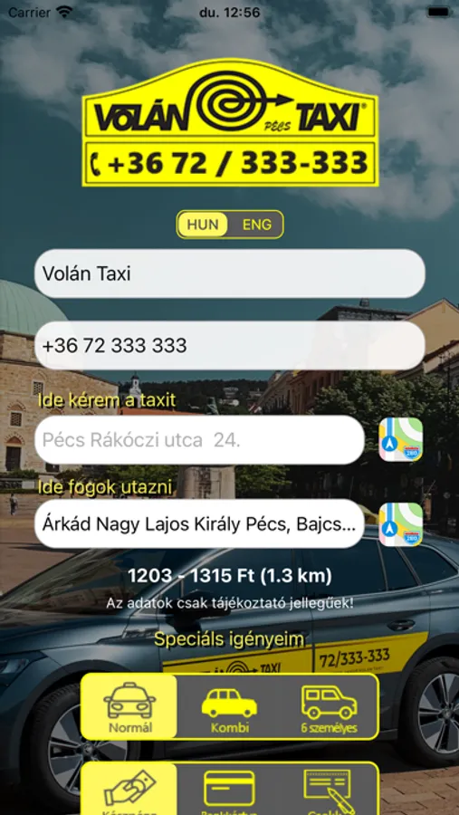 Használd Pécsen és környékén taxirendelő alkalmazásunkat. Nem kell telefonálnod, nem kell a diszpécserre várnod, rendelésedet az automata kiadó rendszer pillanatok alatt eljuttatja a legközelebbi szabad taxinak. Még a címedet sem kell megadnod, mert az alkalmazás a gps koordinátáid alapján meghatározza. Előhűtött autót szeretnél? Kis állatot is vinnél magaddal? Ikonos rendszerünkkel ennél könnyebb már nem lehet a taxi rendelés...
