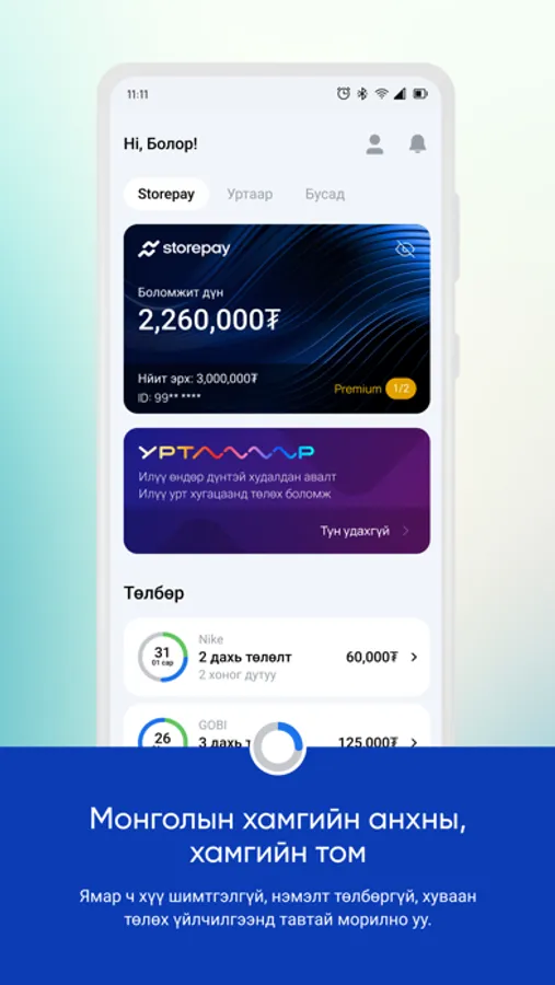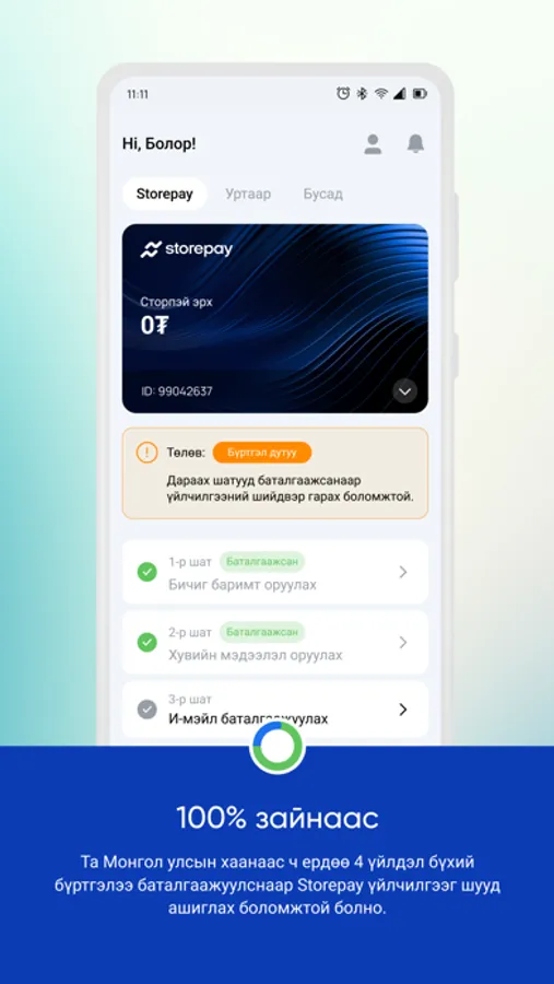 Финтек болон Блокчэйний төгс хослол Storepay апликейшн нь хүссэн бүтээгдэхүүн үйлчилгээгээ ямар ч хүү, шимтгэл, нэмэлт төлбөргүй хуваан төлөх нөхцөлөөр худалдан авах боломжийг олгож буй Digital шийдэл юм.