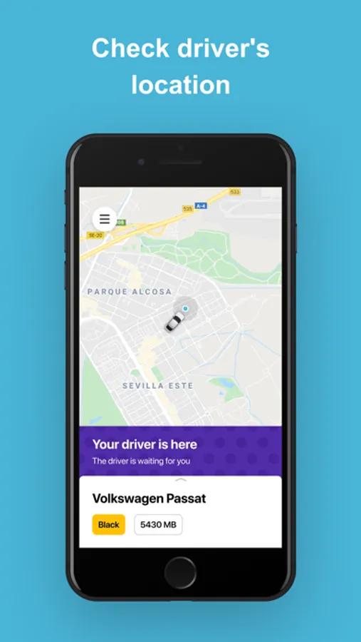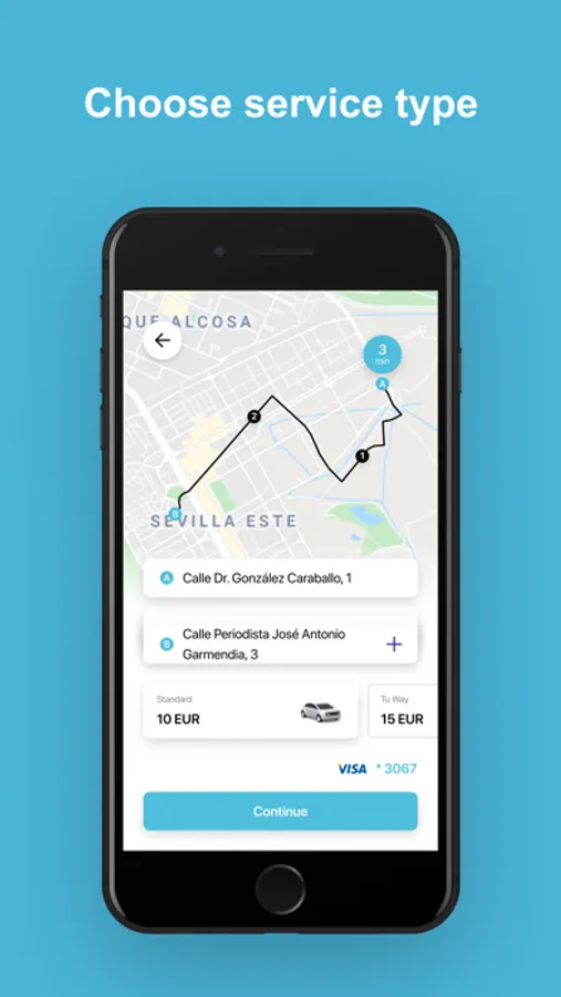 Tuway is easy to use app that works in the city of Sevilla. Open the app and select the destination. The application uses your location so that driver knows where to pick you up.