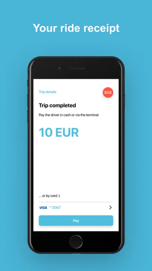 The payment for taxi ride can be in cash or with credit card. You will always know the price before you order taxi and travel. Evaluate your experience at the end of the ride, helping us to improve Tuway service.