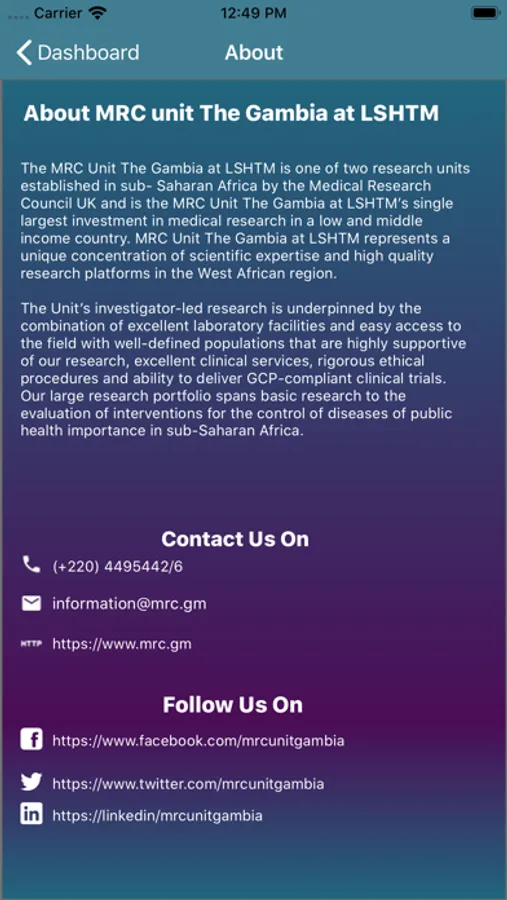 Medical Research Council The Gambia Unit at London School of Hygiene and Tropical Medicine campus app provides essential services to ease access to information, and free movement around our campuses.