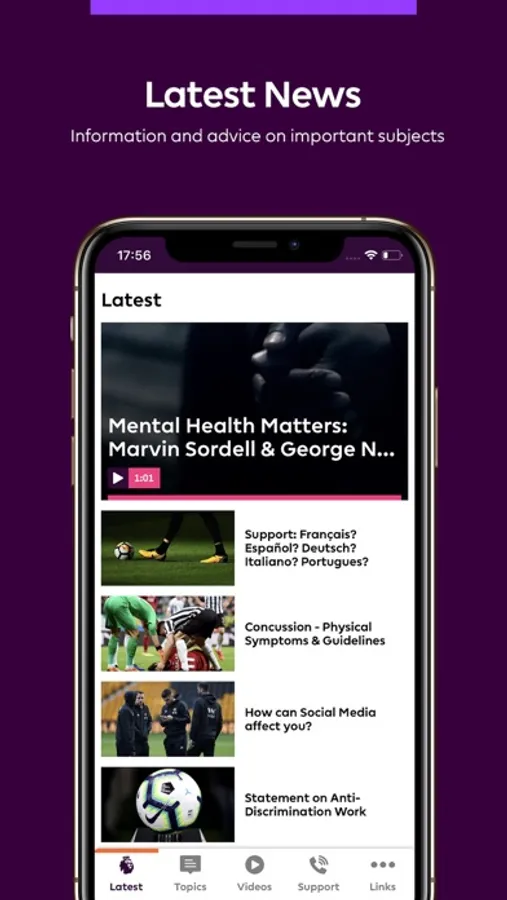 The Premier League Player App will include information, articles, video content and signposting for a range of topics. All information has been provided by the Premier League, partner organisations and providers within the Premier League Player Care Programme.