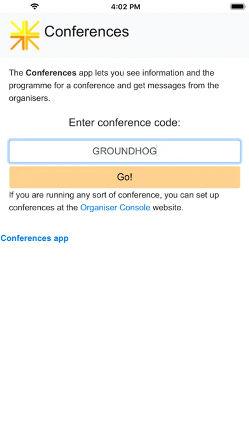 This app is an interactive guide to a conference or series of events. Use it with a conference code given to you by the organiser - or set up your own conference.