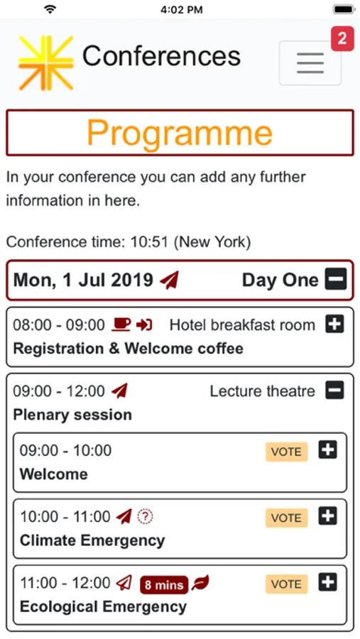 The Conferences app replaces the need for a printed programme. The programme can be updated by the organisers and they can send you important notification messages.