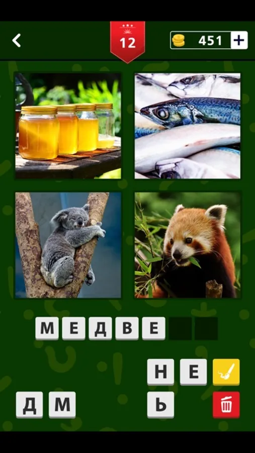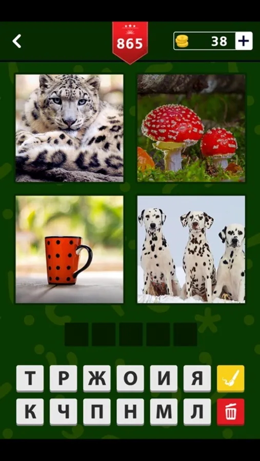 В игре 4 картинки 1 слово необходимо из заданных букв подобрать слово, описывающее все четыре картинки. На сложных и интересных уровнях вы увидите с особенной заботой подобранные катринки. За каждый правильный ответ вы получаете драгоценные монеты, которые можно использовать для приобретения подсказок, а они ох как вам пригодятся, ведь игра 4 картинки 1 слово очень сложная!