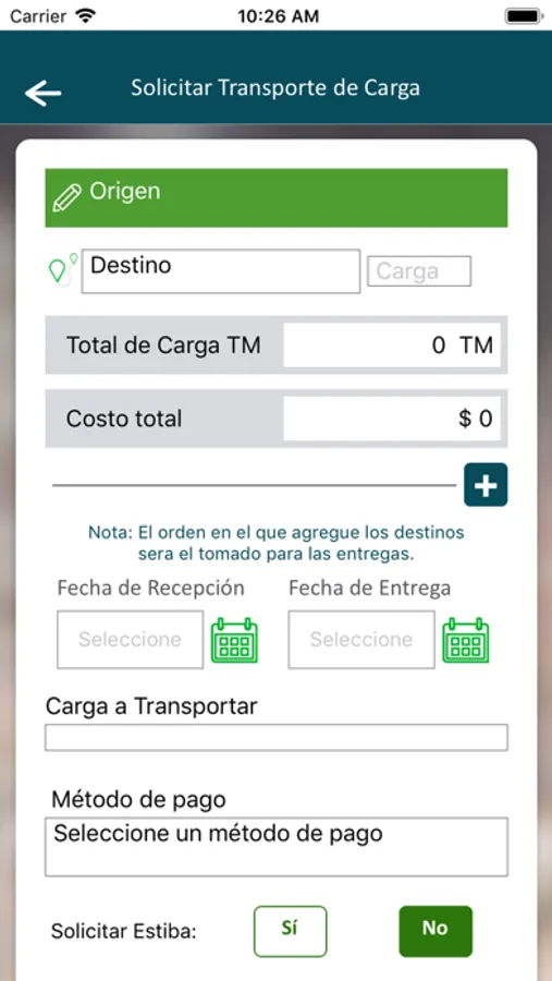 Aplicación que permite solicitar transporte de mercancía. Envía una solicitud con el destino de tu carga, datos de información y acepta las postulaciones de otros conductores disponibles para realizar el flete.