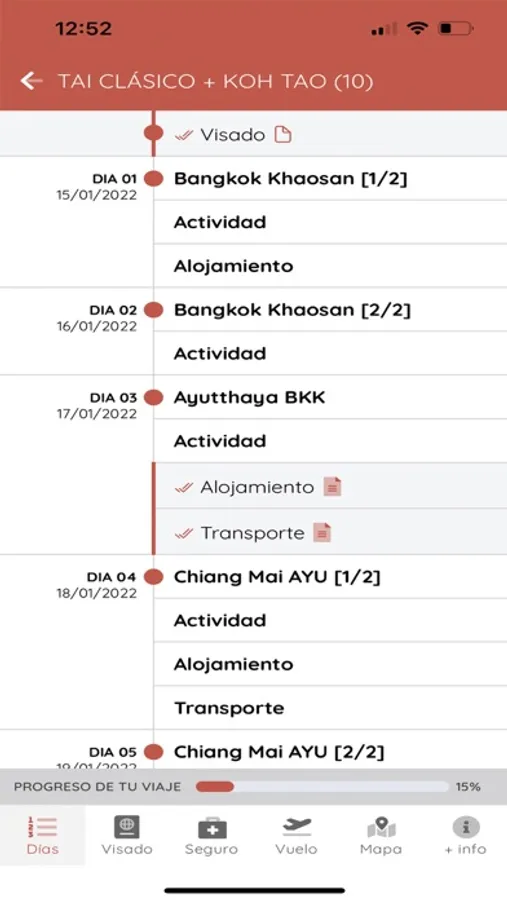 - Timeline de tu viaje: El detalle, día a día, de tu itinerario en tu móvil.