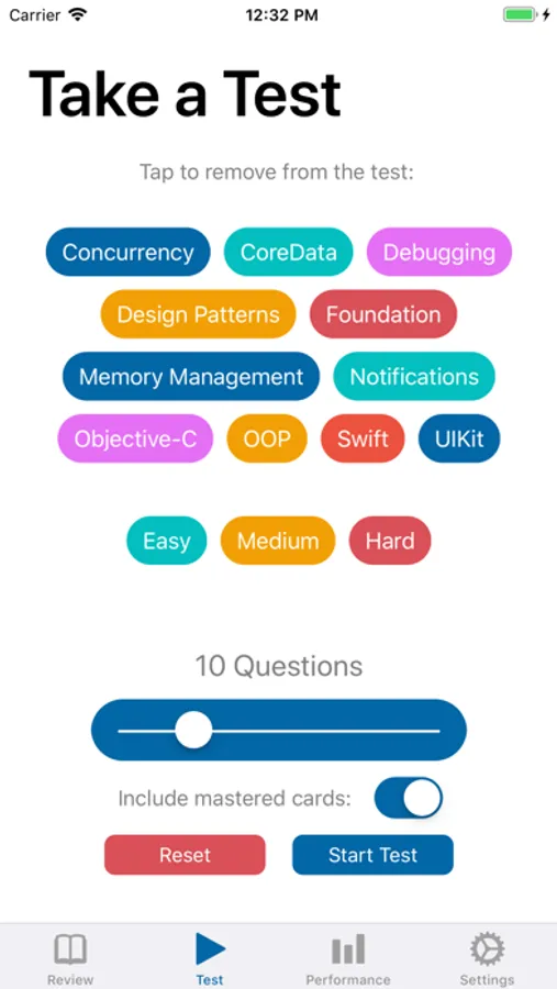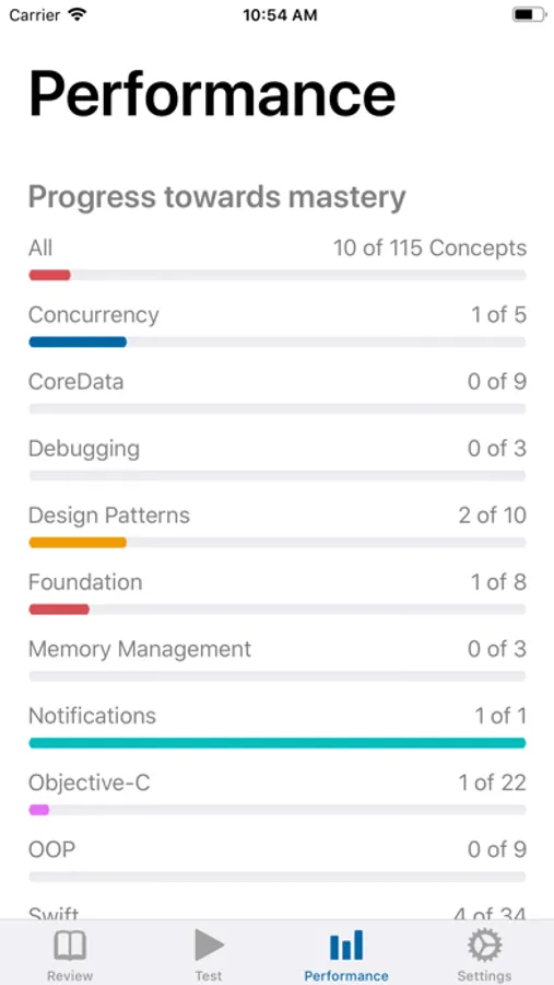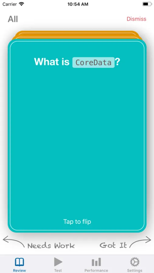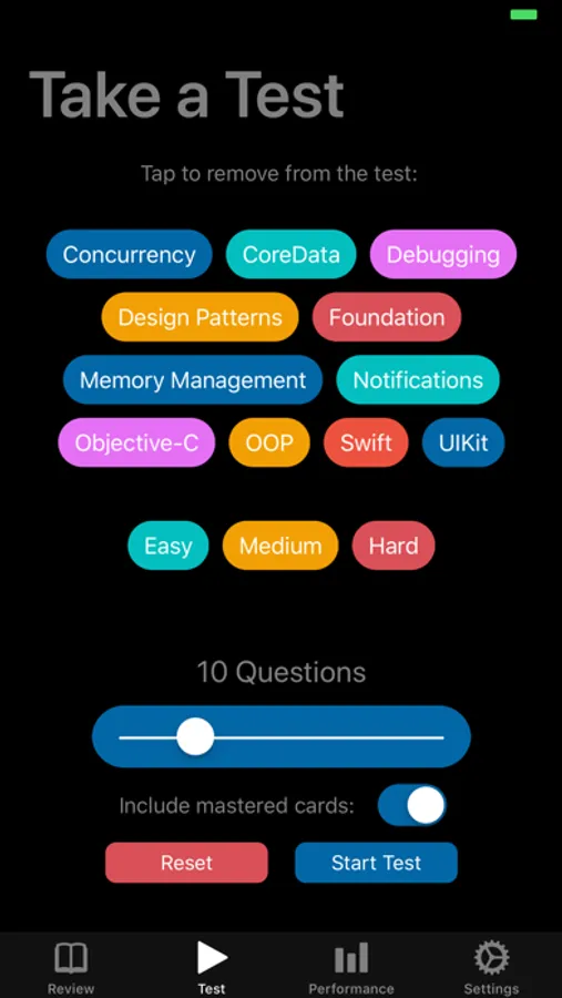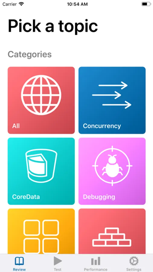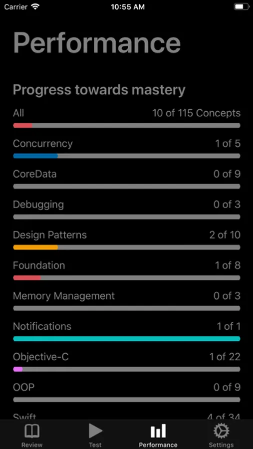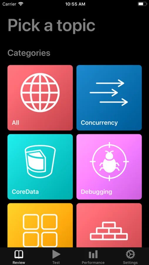 StudySwipe let's you track your mastery of iOS questions and topic including and not limited to: Swift, Core Data, Concurrency, Networking, UIKit, Animation, and much much more.