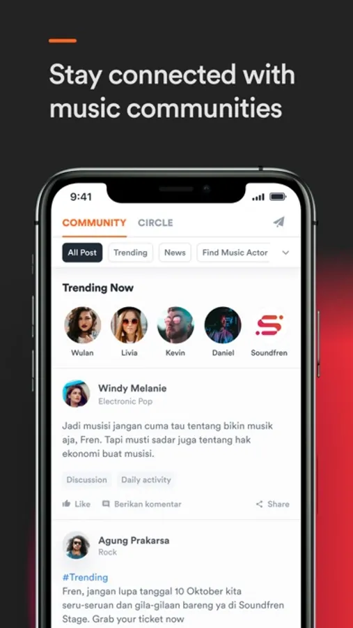 Ever thought about getting serious in the Indonesian music industry? Clueless which to contact, or short in talents? Soundfren does more than helping you stay connected with other musicians and music communities. Soundfren is your personal platform to share your portfolio, experiences and to build networking relationships. Introducing Soundfren, the platform for musicians, talents, engineers, and everyone in the music industry to connect, collaborate, and produce wonders—connecting music community as one.