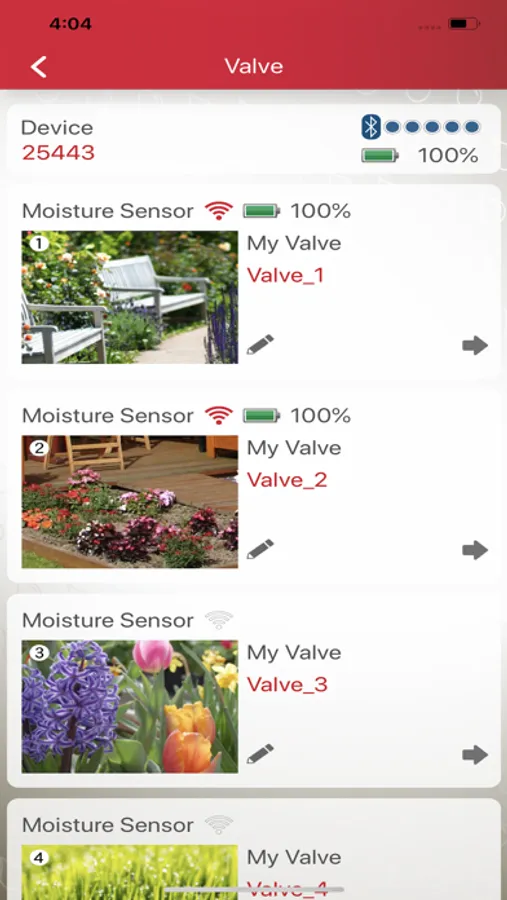• Manage one or many controllers from a single app with the ability to name each controller, capture an image or uploaded from your gallery. You can replace the valve’s photo and name to easily distinguish between them where you want to water