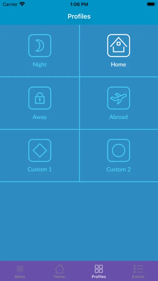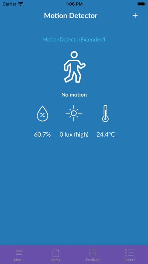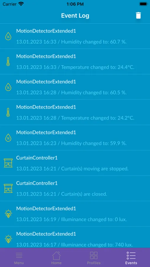 The application maintains flexible Home Profiles allowing to automatically react on any events produced by the sensors.