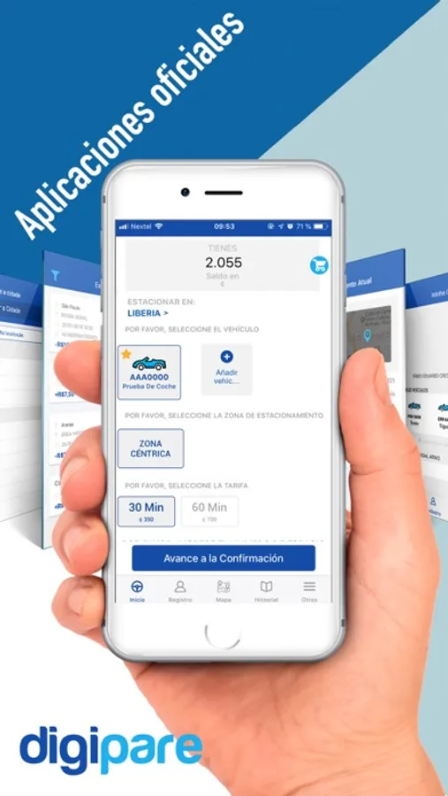 ¡Evita multas y controla tus gastos en estacionamientos regulados o privados! Usa nuestro novedoso sistema de pago de aparcamiento en zonas reguladas con tu teléfono móvil; Digipare te ayuda a pagar por estacionamiento en las áreas Zona Azul en diversas ciudades de Latinoamérica de la manera más rápida y segura ¡Ahorra tiempo y paga con tu teléfono móvil en menos de un minuto! Si tu tiempo está por agotarse ¡No te preocupes! Puedes abonar más tiempo desde tu celular sin tener que regresar a tu auto.