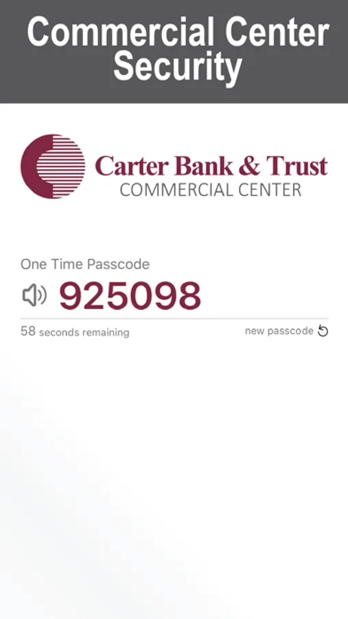 Carter Bank & Trust Commercial Center Security's Mobile App protects your Commercial Center, your commercial banking and cash management application from Carter Bank & Trust..