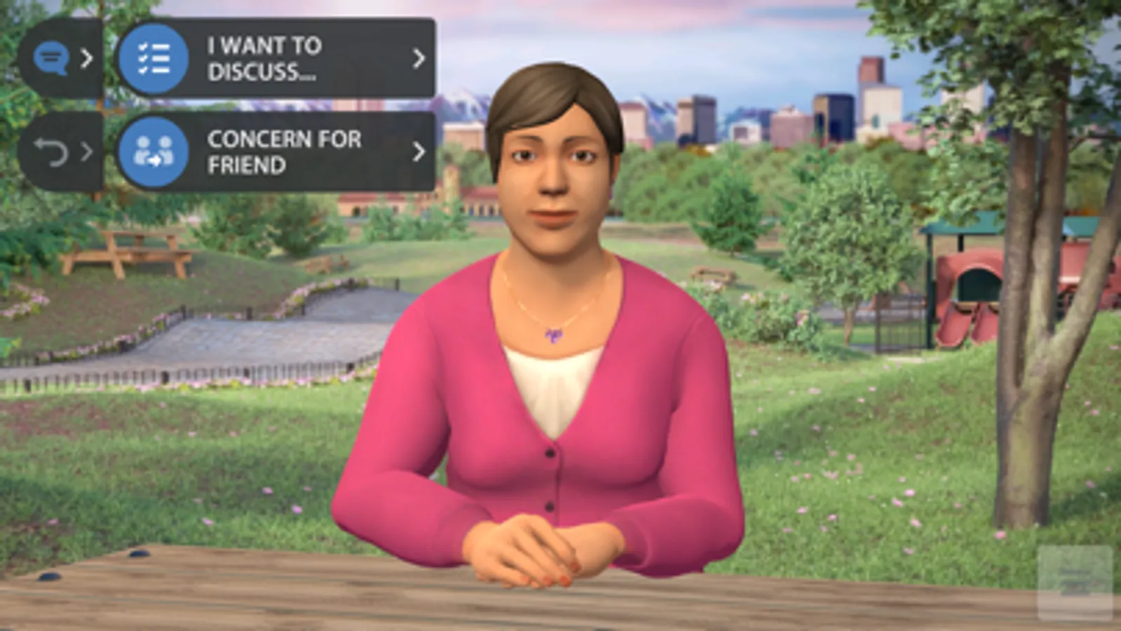 The simulation was developed by Kognito in collaboration with Peer Assistance Services, Inc. and is powered by the Kognito proprietary simulation platform and methodology. All rights reserved.