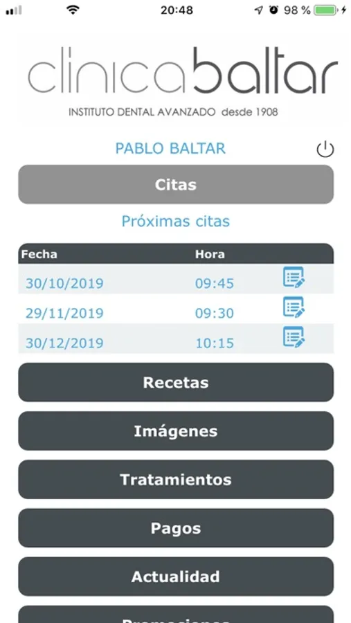 Con esta aplicación podrás consultar tus datos de paciente en la Clinica Baltar y gestionar tus citas desde el movil.