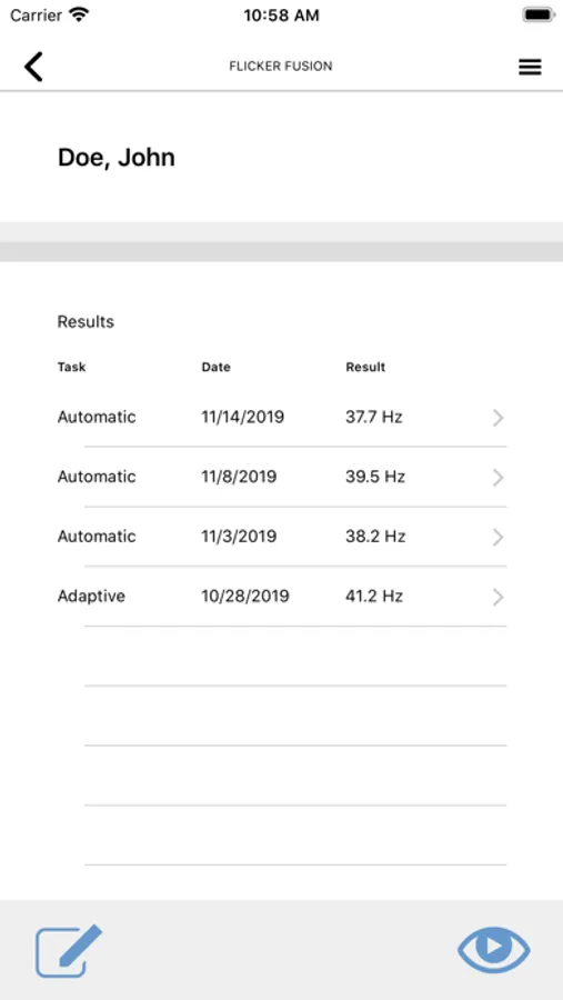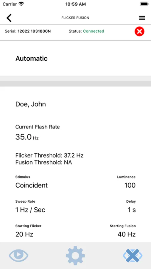 The Flicker Fusion administration application works in conjunction with the Lafayette Instrument Flicker Fusion system. The app allows an administrator to create/control a Critical Flicker Frequency (CFF) exam as well as store the results by examinee. The Flicker Fusion is for use in education and research and is not intended for medical or diagnostic purposes.