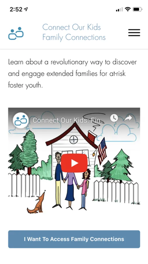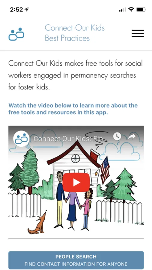 Our mission is to give free modern apps to social workers, so that they can find permanent loving homes for kids in foster care. If you're a foster care focused social worker, then Connect Our Kids is for you.