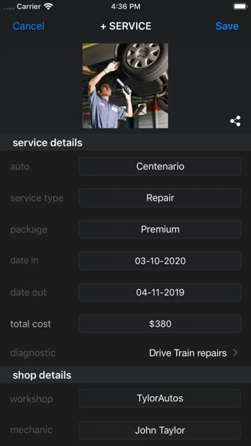 Autos need repair and owner need control of that information. Autochek keeps a registry of dates, location, ratings, mechanic name, workshop and more. It also features a Tile UI that helps identify each entry fast and easy. Each Service is connected to a particular Auto of your choice.