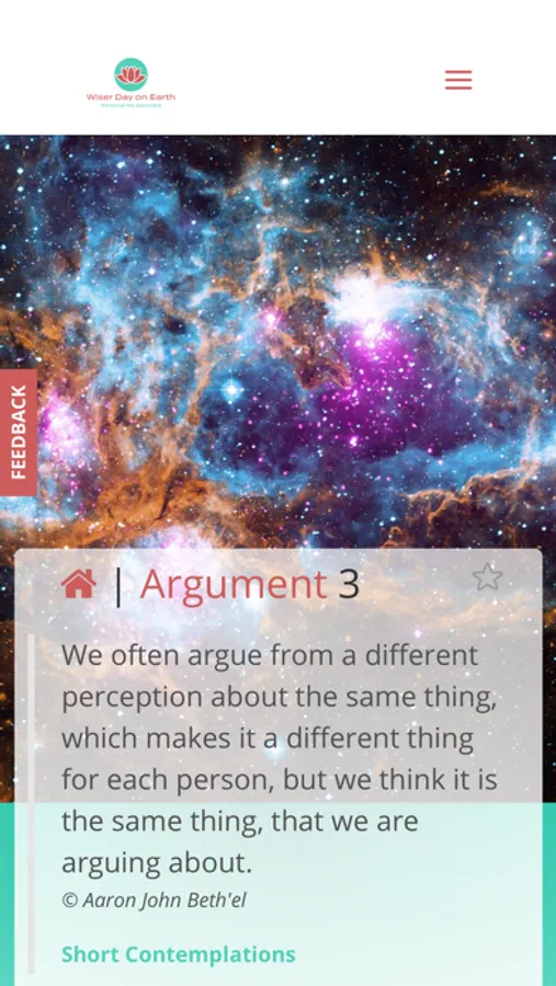 Wiser Day on Earth is a personal life assistant containing more than 900 subjects in alphabetical order, with over 3600 contemplations written by Aaron John Beth'el since 1984.