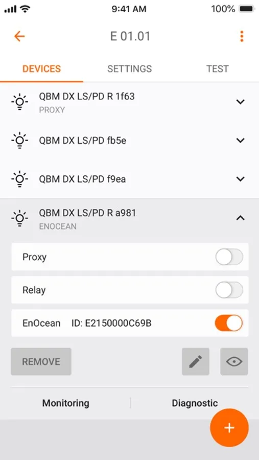 By proximity detection a list of detected qualified Bluetooth Mesh OSRAM components is displayed, where up to 5 devices simultaneously can be added to the network. By using the distance filter (RSSI), the list of visible components can be restricted.