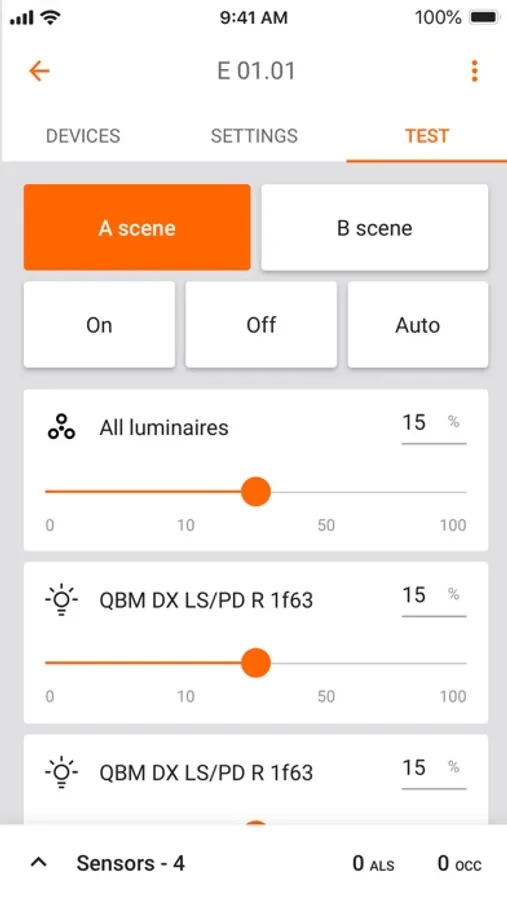 The light control settings and the behaviour can be tested on site and individually adjusted.